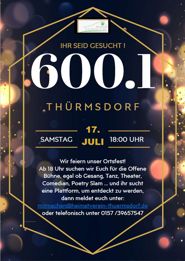 0 comments on “600 Jahre Thürmsdorf – 16.07. – 17.07.2021” Add yours →